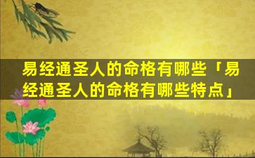 2、易经 💮 通圣人的命格有哪 🐬 些特点