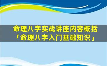 命理八字实 🦢 战讲座 🐧 内容概括