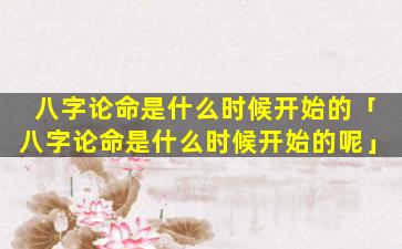 2、八字论命是 🐯 什么时候开始的呢