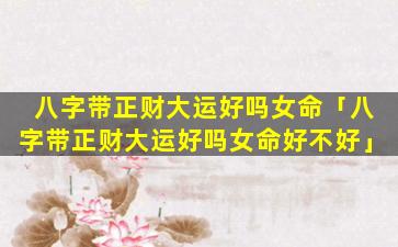 八字带正 🌸 财大 🌲 运,女命吉凶