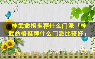 3、神武命格推 🦟 荐 🦁 什么门派最好