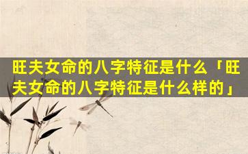 2、旺夫女命的 🐵 八字特征是什 🐝 么样的