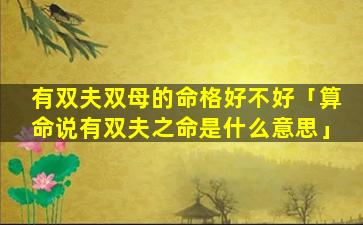 双 🌻 夫双母的命格 🕷 在传统文化中被认为是一种不吉利 🐼 的命格。