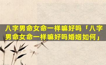 3、八字男命女 🌿 命 🐧 一样嘛好吗婚姻