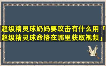 1、超级精灵球奶妈要攻 🌲 击有什 🐱 么用
