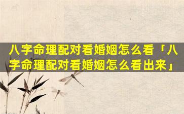 3、八字命理配 🌻 对看婚 🦍 姻怎么看的
