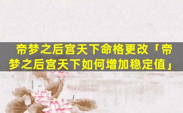 1、帝梦之后宫天下命格更 🐠 改
