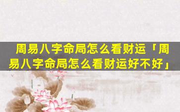 2、周易 🦊 八字 🦢 命局怎么看财运好不好