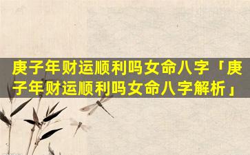 3、庚子年财运顺利吗 🐴 女命 💐 八字命理