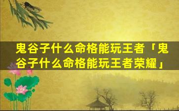 2、鬼谷子什么命格 🐛 能玩 🪴 王者荣耀