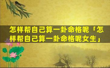2、怎 🪴 样帮自己算一卦命格呢女生