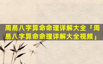 2、周易八 🍁 字算命命理详解大全视频 🐅
