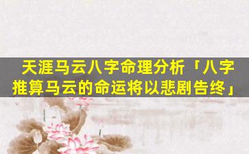 2、八字推算马 🐦 云的命运将以悲剧告 🐵 终