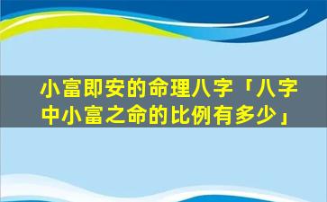 傳統八字命理學中並沒有明 🐺 確定義「小富」的具體標準或比例。因此,無「法」提。供 🦢 準確的數據來回答八字 💐 中小富之命的比例有多少這個問題