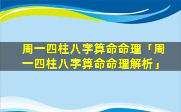 周一四 🦆 柱八字 🦄 算命命理 🐛 解析