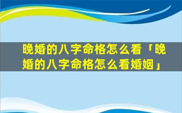 晚婚,是指 🌵 一个人在较晚的年 🦢 龄结婚。根,据。八字学说可以通过分析一个人的八字找出晚婚的 ☘ 命格特征
