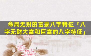 八 🐋 字无财大富和巨富 🐛 的八字特征
