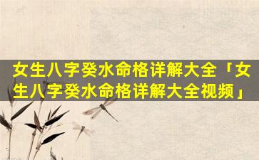 2、女生八字癸水 🐘 命格详 🐋 解大全视频