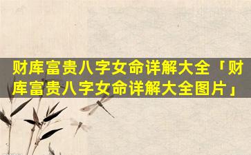 2、财库富贵八字女命 🌸 详解大全图 🐕 片