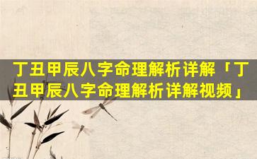 视频链接[丁丑甲辰八字命理解 🐞 析详解]()