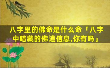1、八字里的佛命是 🕊 什么 🦢 命