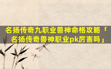 2、名扬传奇兽神职业pk厉害 🐳 吗