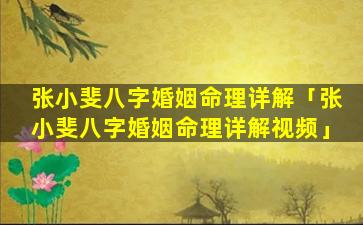 抱歉,我没有关于“张小斐八字婚姻命理详解视频”的 🌷 信息。