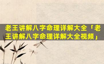 1、老王讲解八字命 🌺 理详 🦢 解大全