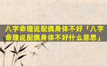 2、八字命理说配偶身体 🪴 不好什么 🐛 意思