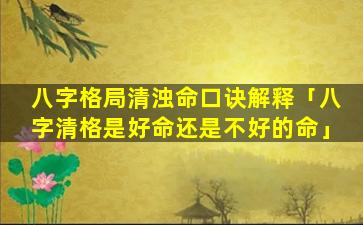 口诀解释 格局清者,富贵清闲 🦄 :八,字格局清,纯没有刑 🦁 冲克害主富贵清闲。