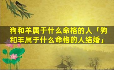 3、狗和羊属于 🌿 什么命格 🐋 的人呢