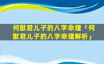 1、何猷君儿子 🐧 的八字 🌹 命理