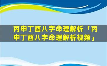 2、丙申丁酉八字 🐕 命理解析视频