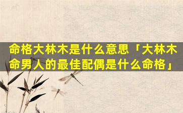 2、大林木命男人的最佳配 🐶 偶是什么命格?