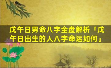 1、戊午 🐠 日男命八 🐠 字全盘解析
