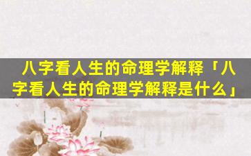 3、八字看人生的 🦊 命理学 🦄 解释大全