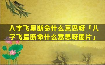 1、八字飞星断 🦟 命什么意思呀 🌷