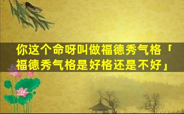 2、福德秀气格是好格还是不 🌴 好 🦊