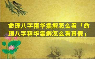 2、命理八字精华集解怎么 🦄 看真假 🐞