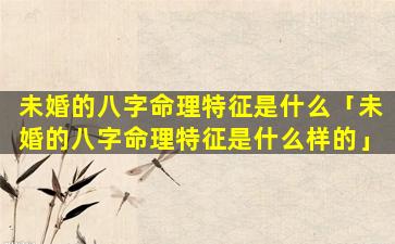 1、未婚的八 🪴 字命理特征是 🌴 什么