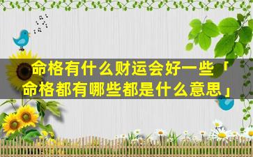 4、命格有什么财运 🐵 会好一些呢