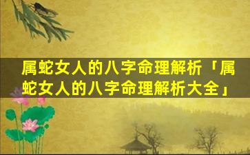 属蛇 🐦 女人的八字命 🦍 理解析图 🌳