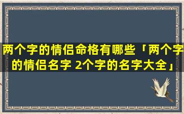 🐬 两个字的情侣命格有哪些「两 🌷 个字的情侣名字 2个字的名字大全」