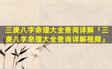 2、三庚八字命理大全 🐞 查询详解视频