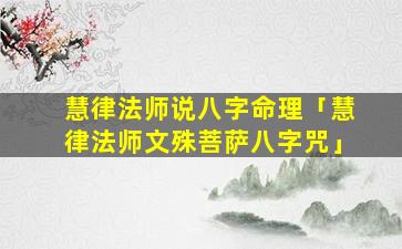 慧律法师 🌻 说八 🍀 字命理 🦋