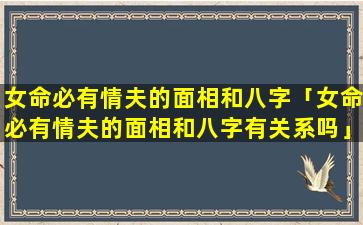 2、女命必有情夫的面相和八字有 🪴 关系吗