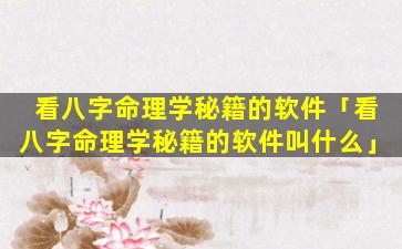 3、看八字命理学 🌷 秘籍的软件有哪些