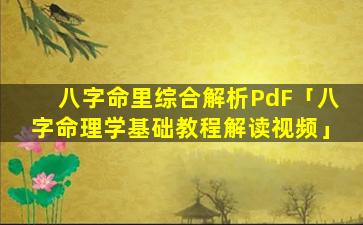 1、八字 🐱 命 🐞 里综合解析PdF