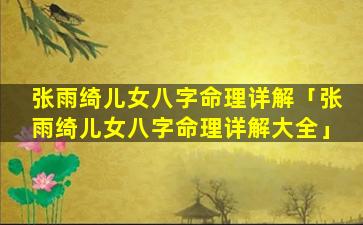 2、张雨 🐅 绮儿女八字命理详解大全