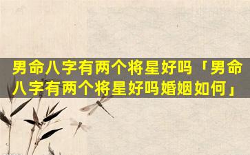 2、男命八 🌺 字有两个将 🐝 星好吗婚姻如何